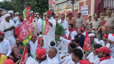 लखीमपुर खीरी कांड: डीएम ऑफिस के सामने सपाइयों का धरना-प्रदर्शन